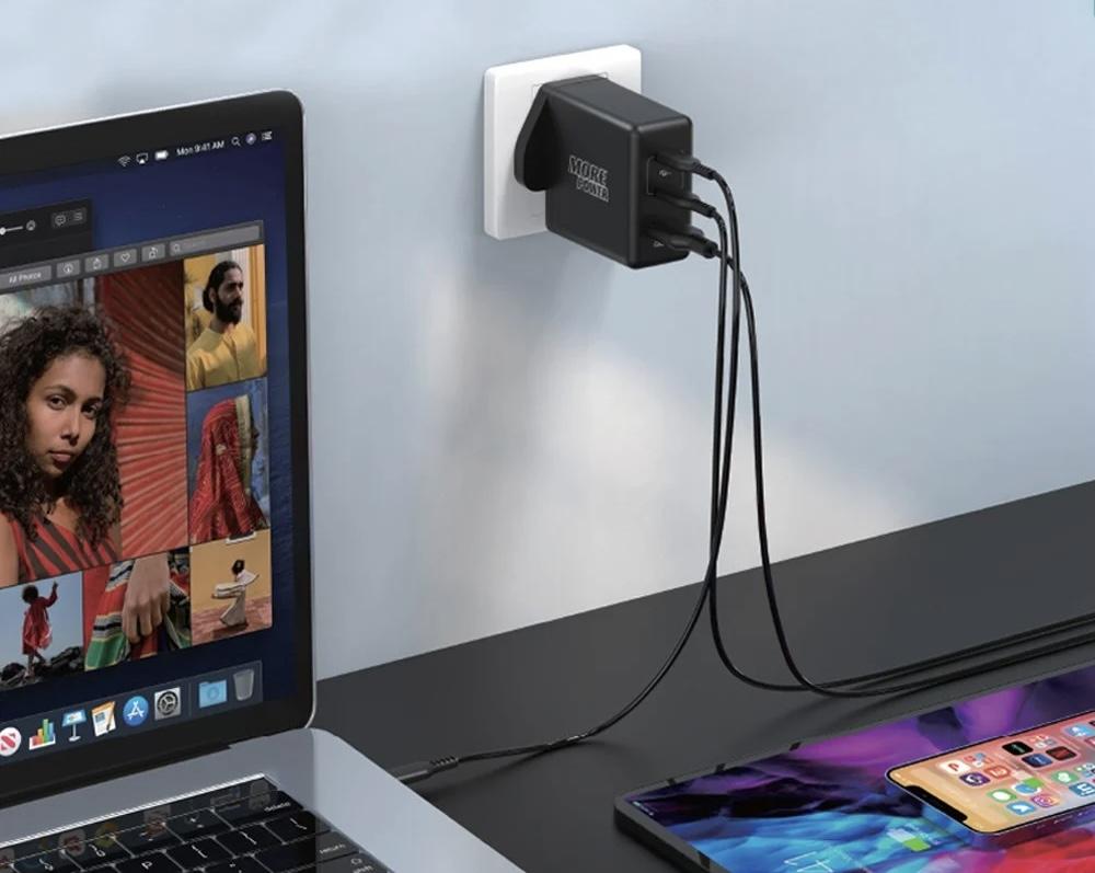 شاحن بيت 65 واط PD من مور باور شحن سريع مخرجين تايب سي ومخرج USB بتقنية GAN