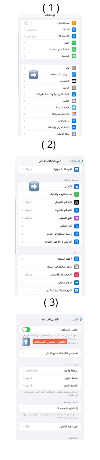 ٤-اللمس المساعد - ويتم التشغيل اللمس المساعد