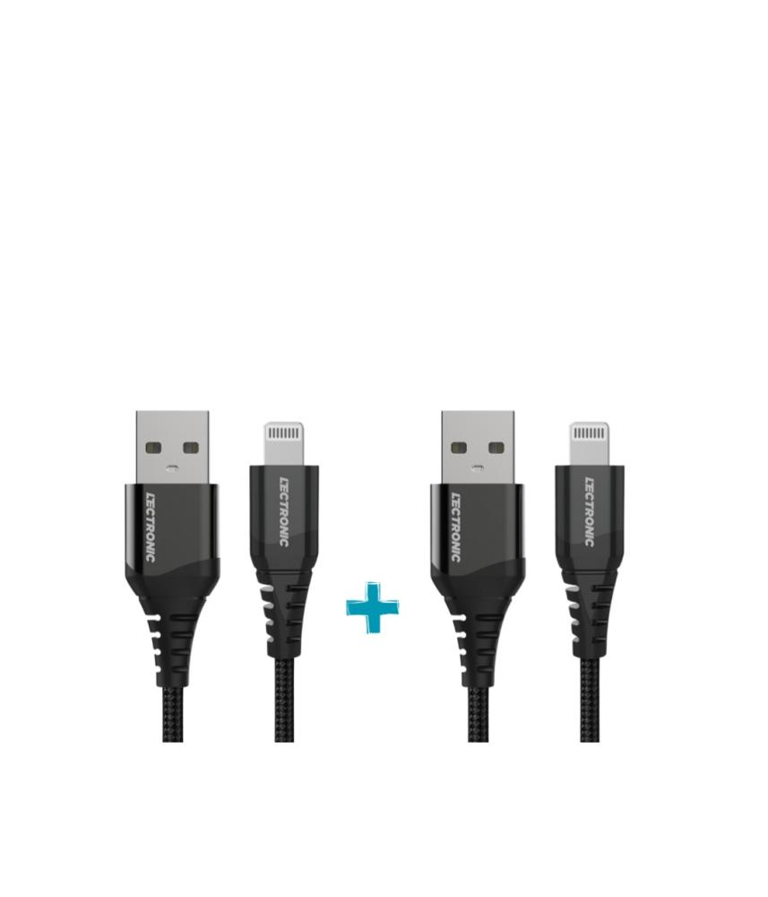 احصل على عرض مميز يشمل 2 كيبل شحن iPhone من LECTRONIC، بتصميم قماشي متين بطول 1.5 متر، يوفر شحن سريع وآمن واستخدام مريح في السيارة، المكتب، أو المنزل.
